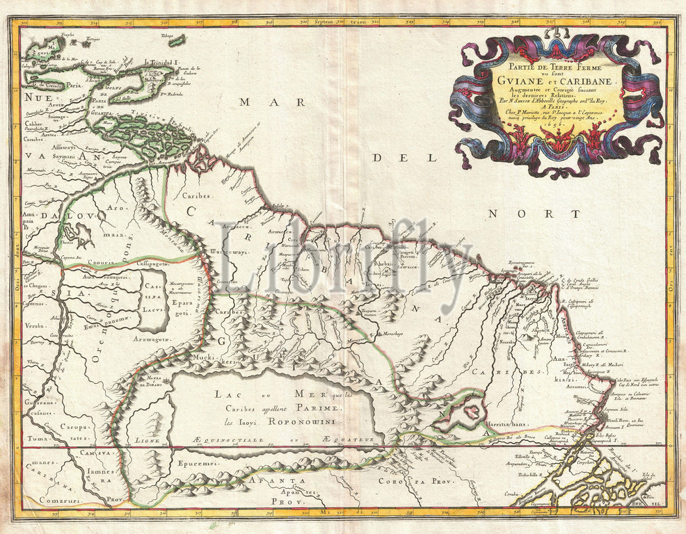 1656, Sanson Map of Guiana, Venezuela, and El Dorado