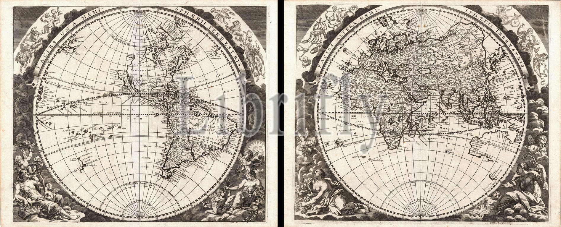 1696, Zahn Map of the World in Two Hemispheres, topography, cartography, geography, land, illustration, geographic, travel, topo, chart, grid, latitude, longitude, geometric, atlas, map, vintage, ancient, history, world, paper, old, retro, earth, atlas, art, historical, decorative, navigation, aged, historic, journey, discovery, exploration, geographical, Mappa mundi, space, region, old map, antique map, rare old maps, old antique plan, ols antique map, old antique view