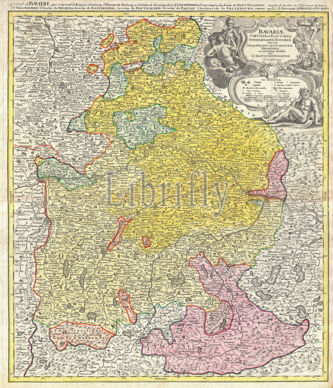 1728, Homann Map of Bavaria, Germany