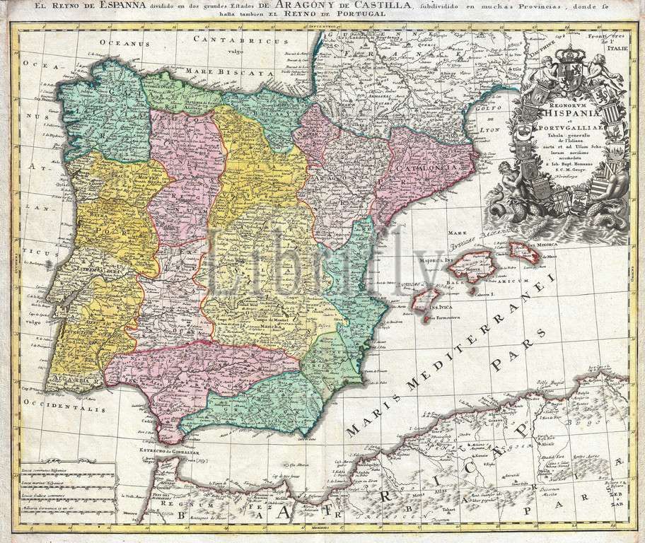 1730, Homann Map of Spain and Portugal