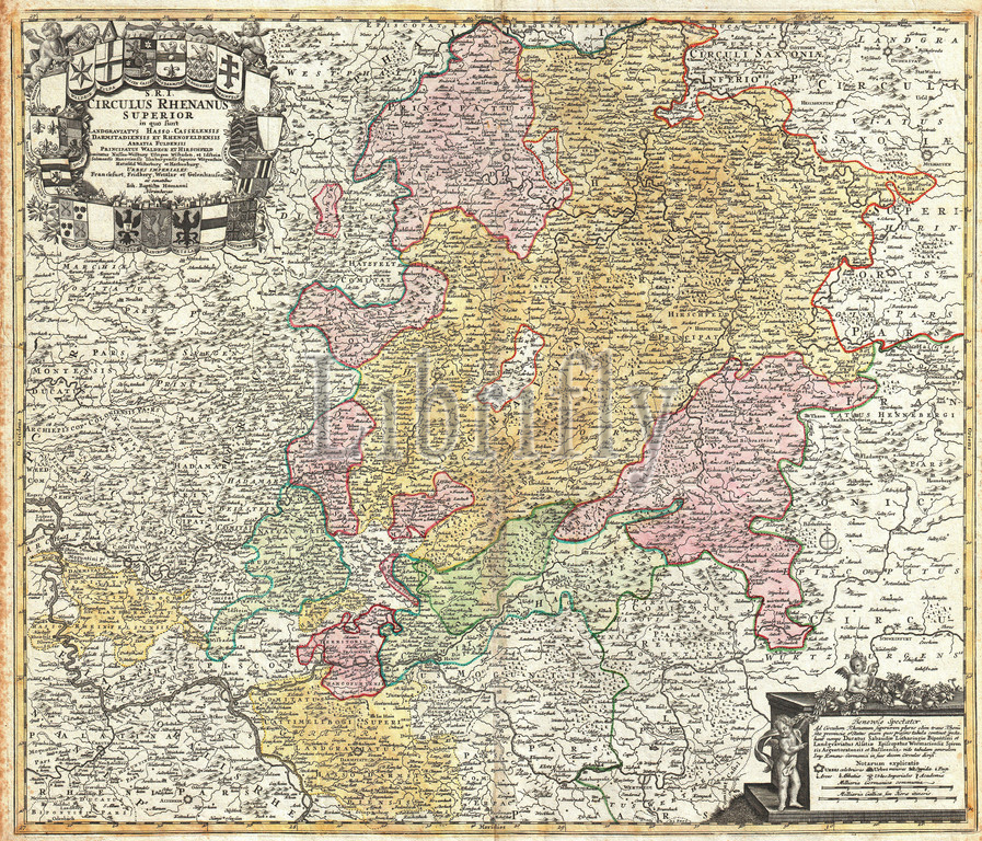 1730, Homann Map of the Upper Rhine, Frankfurt, Cassel, Coblentz, Darmstadt, topography, cartography, geography, land, illustration, geographic, travel, topo, chart, grid, latitude, longitude, geometric, atlas, map, vintage, ancient, history, world, paper, old, retro, earth, atlas, art, historical, decorative, navigation, aged, historic, journey, discovery, exploration, geographical, Mappa mundi, space, region, old map, antique map, rare old maps, old antique plan, ols antique map, old antique view