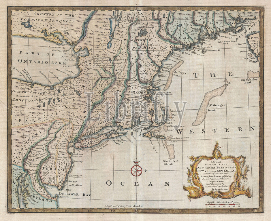1747, Bowen Map of New Jersey, Pennsylvania, New York and New England, topography, cartography, geography, land, illustration, geographic, travel, topo, chart, grid, latitude, longitude, geometric, atlas, map, vintage, ancient, history, world, paper, old, retro, earth, atlas, art, historical, decorative, navigation, aged, historic, journey, discovery, exploration, geographical, Mappa mundi, space, region, old map, antique map, rare old maps, old antique plan, ols antique map, old antique view