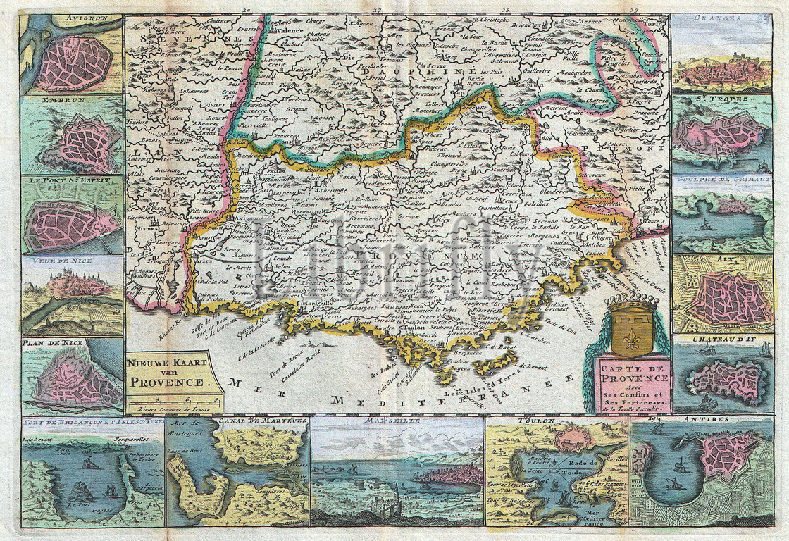 1747, La Feuille Map of Provence, France