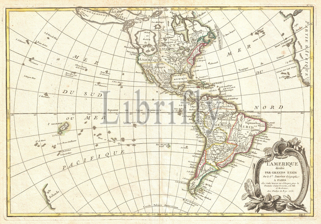 1762, Janvier Map of North America and South America, Sea of the West, topography, cartography, geography, land, illustration, geographic, travel, topo, chart, grid, latitude, longitude, geometric, atlas, map, vintage, ancient, history, world, paper, old, retro, earth, atlas, art, historical, decorative, navigation, aged, historic, journey, discovery, exploration, geographical, Mappa mundi, space, region, old map, antique map, rare old maps, old antique plan, ols antique map, old antique view