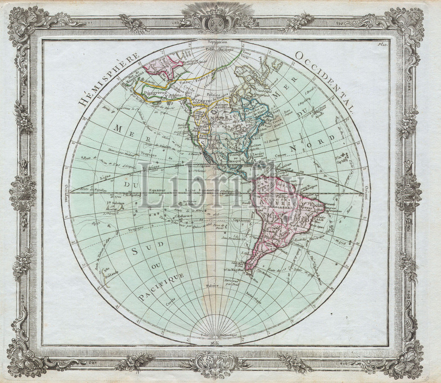 1764, Brion de la Tour Map of the Western Hemisphere, North America and South America