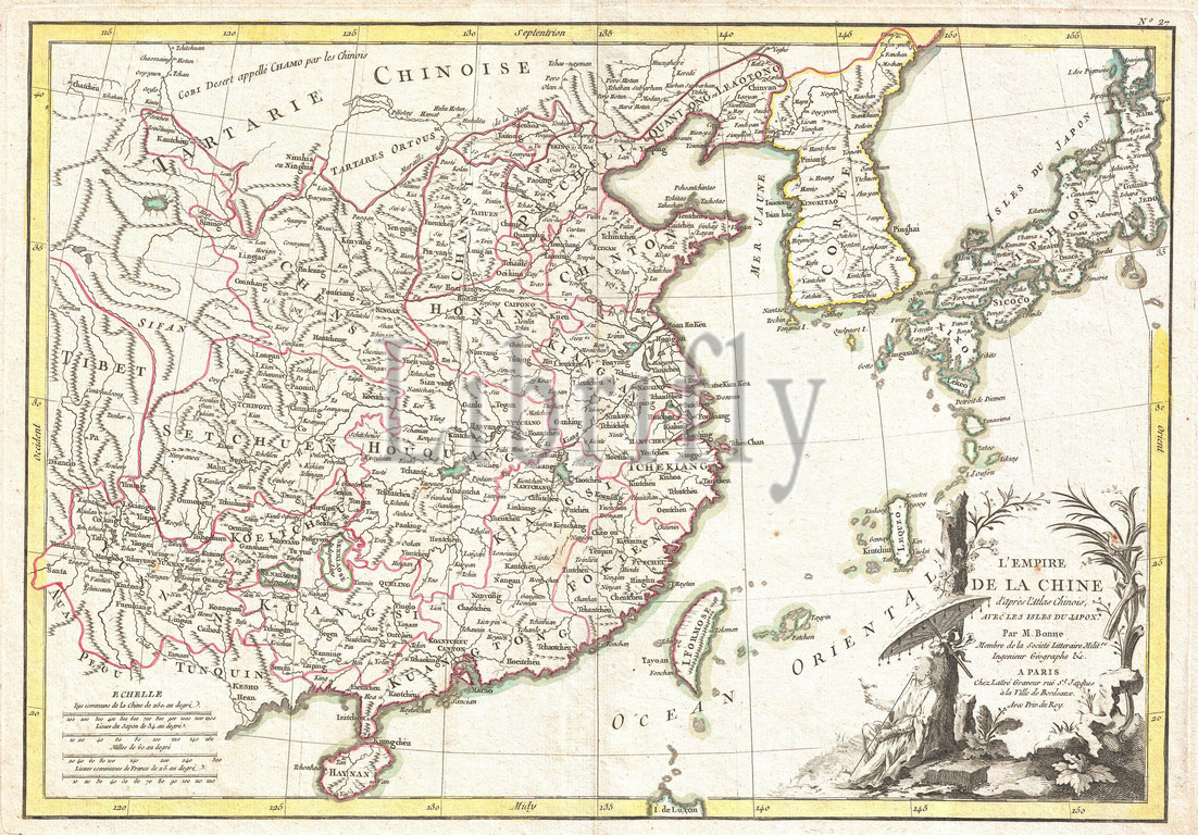 1770, Bonne Map of China, Korea, Japan and Formosa, Rigobert Bonne 1727 – 1794, one of the most important cartographers of the late 18th century, topography, cartography, geography, land, illustration, geographic, travel, topo, chart, grid, latitude, longitude, geometric, atlas, map, vintage, ancient, history, world, paper, old, retro, earth, atlas, art, historical, decorative, navigation, aged, historic, journey, discovery, exploration, geographical, Mappa mundi, space, region, old map, antique map, rare old maps, old antique plan, ols antique map, old antique view