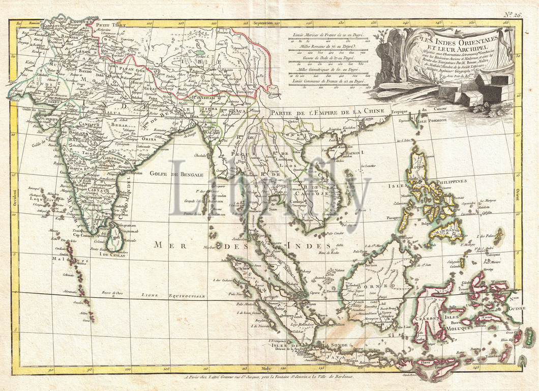 1770, Bonne Map of India, Southeast Asia and The East Indies, Thailand, Borneo, Singapore, Rigobert Bonne 1727 – 1794, one of the most important cartographers of the late 18th century, topography, cartography, geography, land, illustration, geographic, travel, topo, chart, grid, latitude, longitude, geometric, atlas, map, vintage, ancient, history, world, paper, old, retro, earth, atlas, art, historical, decorative, navigation, aged, historic, journey, discovery, exploration, geographical, Mappa mundi, space, region, old map, antique map, rare old maps, old antique plan, ols antique map, old antique view