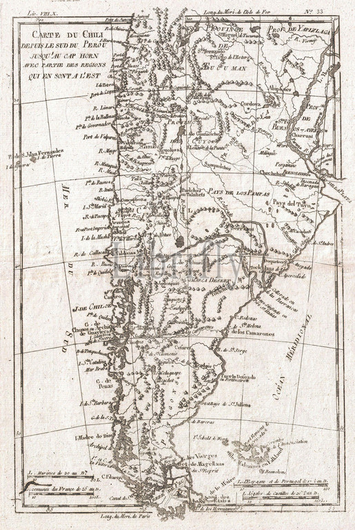 1780, Raynal and Bonne Map of Chile, Rigobert Bonne 1727 – 1794, one of the most important cartographers of the late 18th century