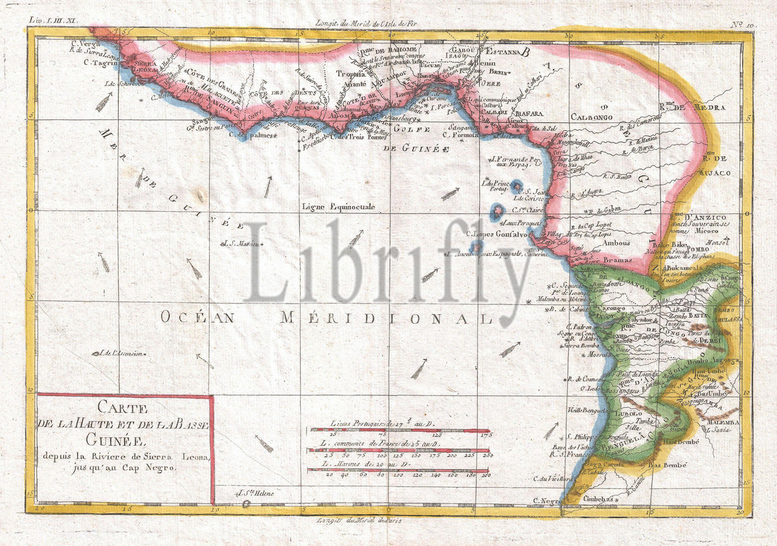 1780, Raynal and Bonne Map of Guinea, Rigobert Bonne 1727 – 1794, one of the most important cartographers of the late 18th century