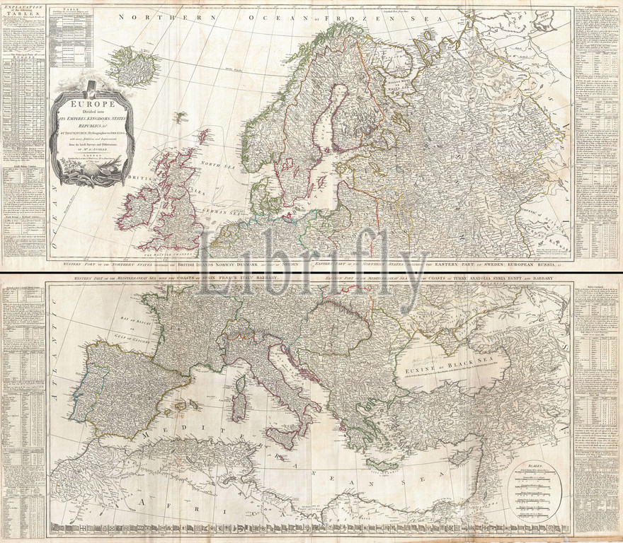 1794, D'Anville Two Panel Wall Map of Europe