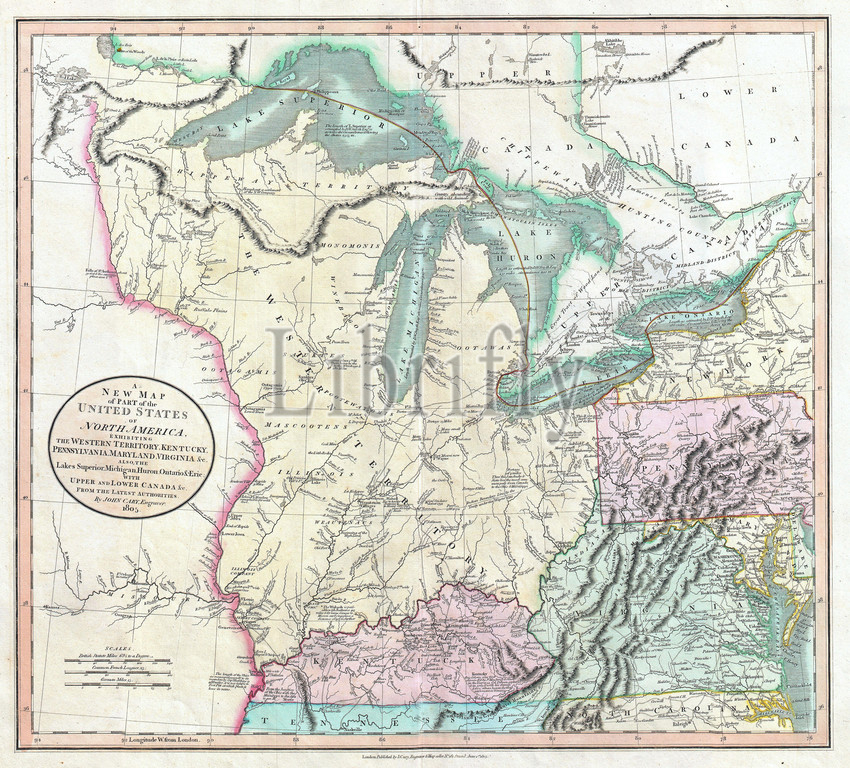 1805, Cary Map of the Great Lakes and Western Territory, Kentucy, Virginia, Ohio, etc.., John Cary, 1754 – 1835, English cartographer