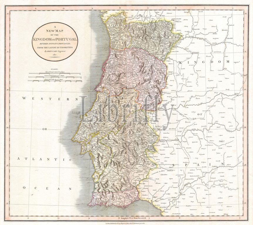 1811, Cary Map of the Kingdom of Portugal, John Cary, 1754 – 1835, English cartographer, topography, cartography, geography, land, illustration, geographic, travel, topo, chart, grid, latitude, longitude, geometric, atlas, map, vintage, ancient, history, world, paper, old, retro, earth, atlas, art, historical, decorative, navigation, aged, historic, journey, discovery, exploration, geographical, Mappa mundi, space, region, old map, antique map, rare old maps, old antique plan, ols antique map, old antique view