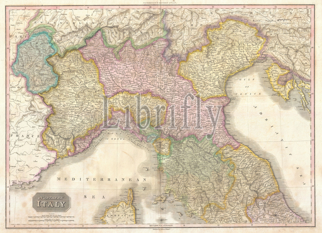 1818, Pinkerton Map of Northern Italy, Tuscany, Piedmont, Milan, Venice , John Pinkerton, 1758 – 1826, Scottish antiquarian, cartographer, UK