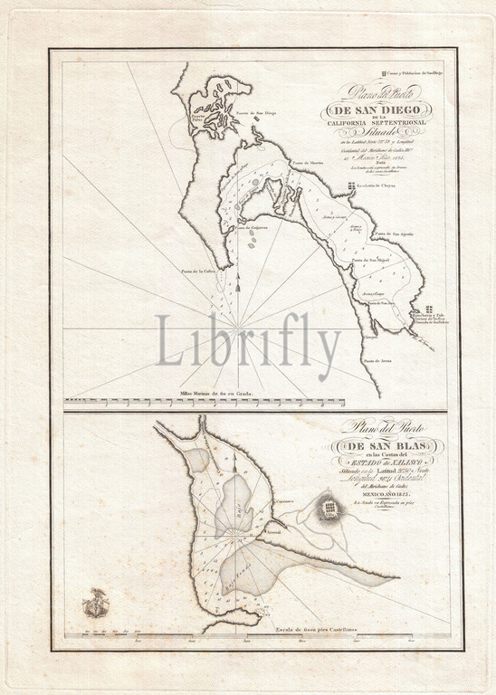 1825, Victoria Map of San Diego, California and San Blas, Mexico