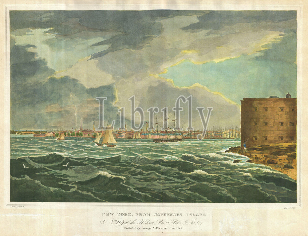 1825, Wall and Hill View of New York City from the Hudson River Port Folio