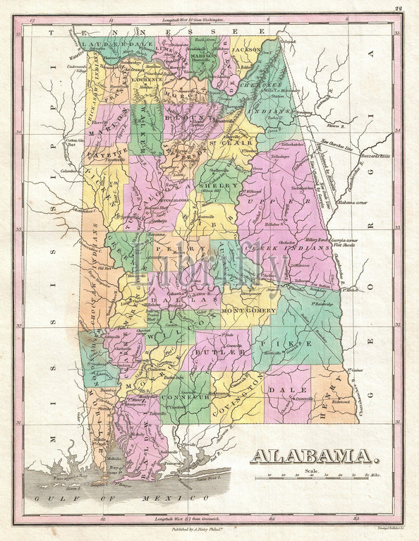 1827, Finley Map of Alabama, Anthony Finley mapmaker of the United States in the 19th century