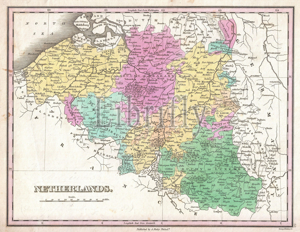 1827, Finley Map of Belgium and Luxembourg, Anthony Finley mapmaker of the United States in the 19th century