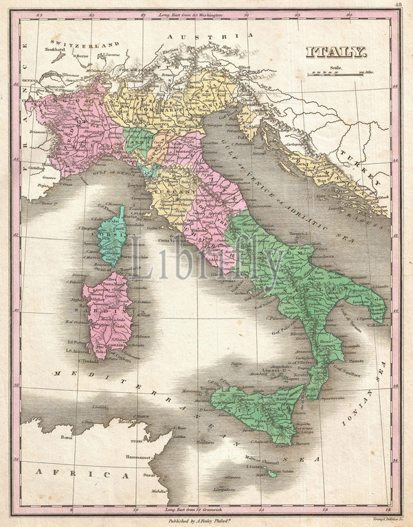 1827, Finley Map of Italy, Anthony Finley mapmaker of the United States in the 19th century