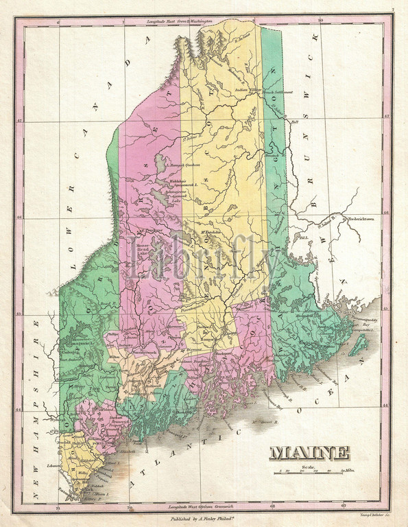 1827, Finley Map of Maine, Anthony Finley mapmaker of the United States in the 19th century