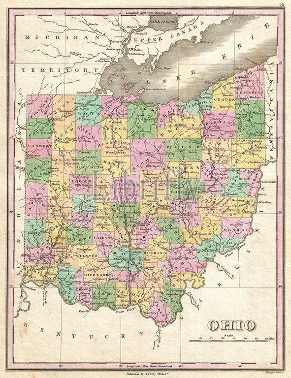 1827, Finley Map of Ohio, Anthony Finley mapmaker of the United States in the 19th century