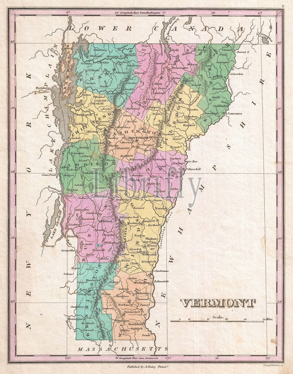 1827, Finley Map of Vermont, Anthony Finley mapmaker of the United States in the 19th century