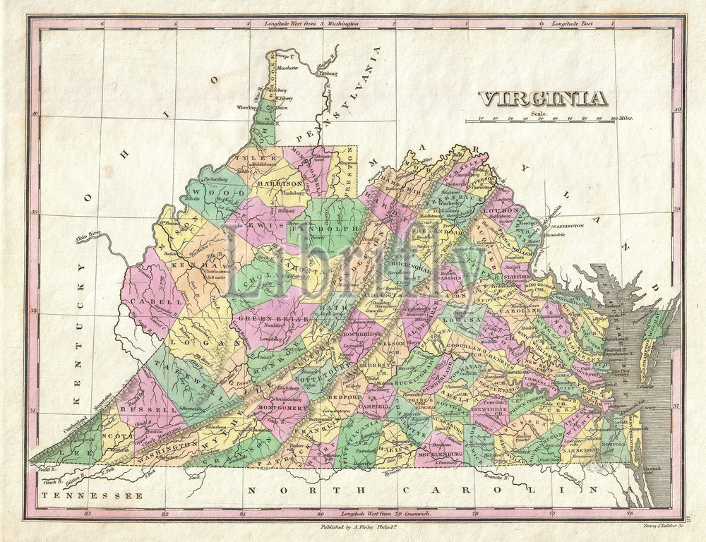 1827, Finley Map of Virginia, Anthony Finley mapmaker of the United States in the 19th century