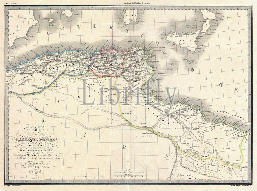 1829, Lapie Historical Map of the Barbary Coast in Ancient Roman Times
