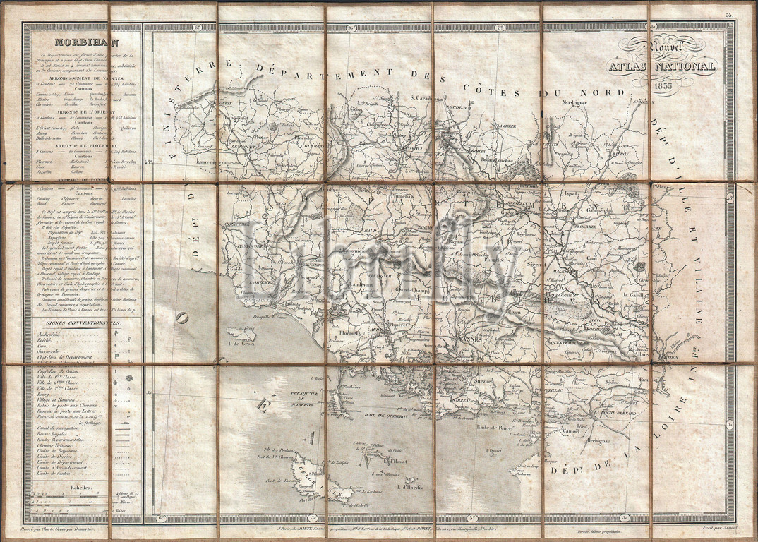 1833, Charle Map of the Dept. of Morbihan, Bretagne, France, topography, cartography, geography, land, illustration, geographic, travel, topo, chart, grid, latitude, longitude, geometric, atlas, map, vintage, ancient, history, world, paper, old, retro, earth, atlas, art, historical, decorative, navigation, aged, historic, journey, discovery, exploration, geographical, Mappa mundi, space, region, old map, antique map, rare old maps, old antique plan, ols antique map, old antique view