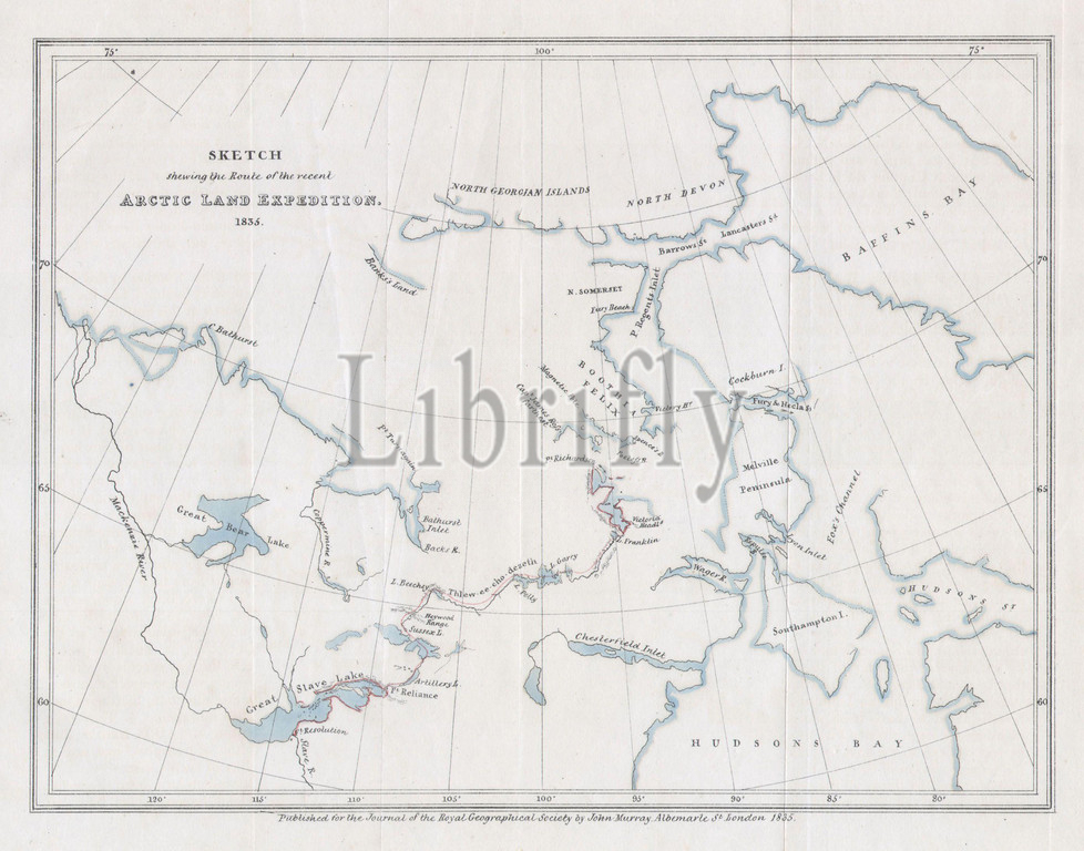 1835, Murray Map of the Arctic Land Expedition, Hudson Bay, Canada