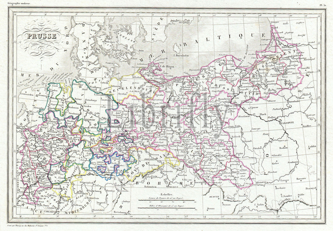 1843, Malte-Brun Map of Prussia, Germany