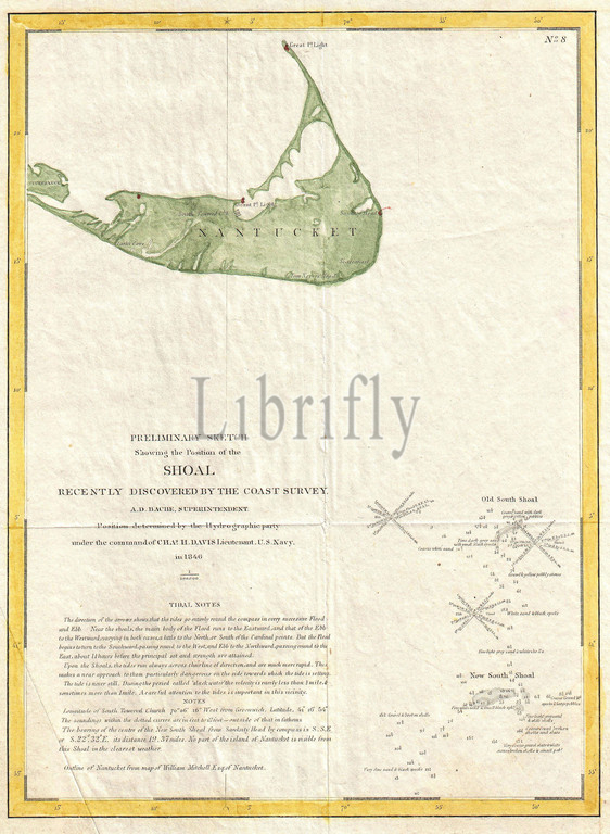 1846, U.S. Coast Survey Map of Nantucket, first U.S.C.S. Map of the Davis Shoals
