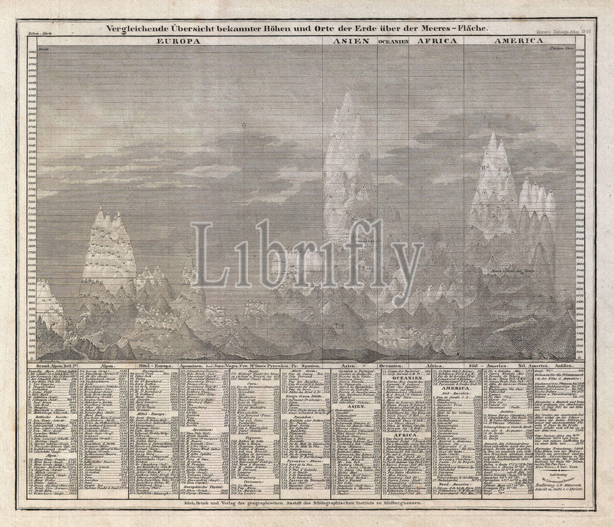 1850, Meyer Comparative Chart of World Mountains, topography, cartography, geography, land, illustration, geographic, travel, topo, chart, grid, latitude, longitude, geometric, atlas, map, vintage, ancient, history, world, paper, old, retro, earth, atlas, art, historical, decorative, navigation, aged, historic, journey, discovery, exploration, geographical, Mappa mundi, space, region, old map, antique map, rare old maps, old antique plan, ols antique map, old antique view