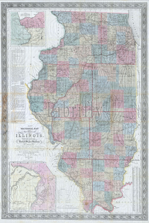1852, Colton Sectional Pocket Map of Illinois, topography, cartography, geography, land, illustration, geographic, travel, topo, chart, grid, latitude, longitude, geometric, atlas, map, vintage, ancient, history, world, paper, old, retro, earth, atlas, art, historical, decorative, navigation, aged, historic, journey, discovery, exploration, geographical, Mappa mundi, space, region, old map, antique map, rare old maps, old antique plan, ols antique map, old antique view