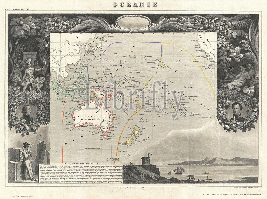 1852, Levasseur Map of Australia and Polynesia, Oceanie