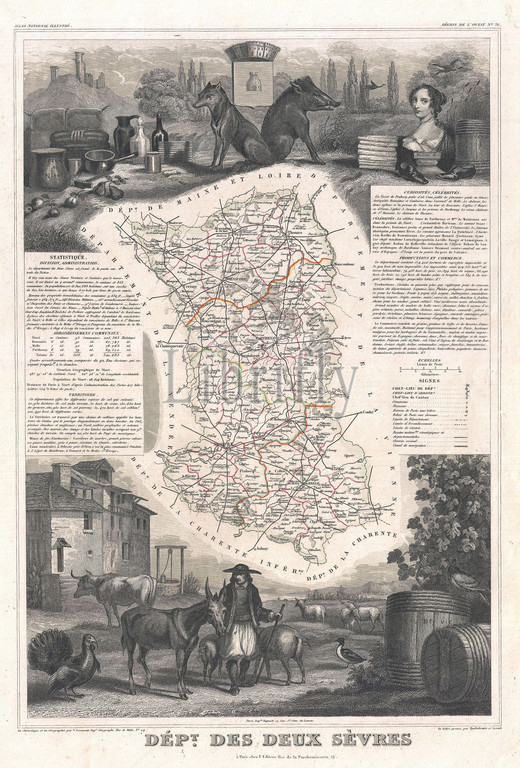 1852, Levasseur Map of the Department Des Deux Sevres, France, Chabichou Cheese Region, topography, cartography, geography, land, illustration, geographic, travel, topo, chart, grid, latitude, longitude, geometric, atlas, map, vintage, ancient, history, world, paper, old, retro, earth, atlas, art, historical, decorative, navigation, aged, historic, journey, discovery, exploration, geographical, Mappa mundi, space, region, old map, antique map, rare old maps, old antique plan, ols antique map, old antique view