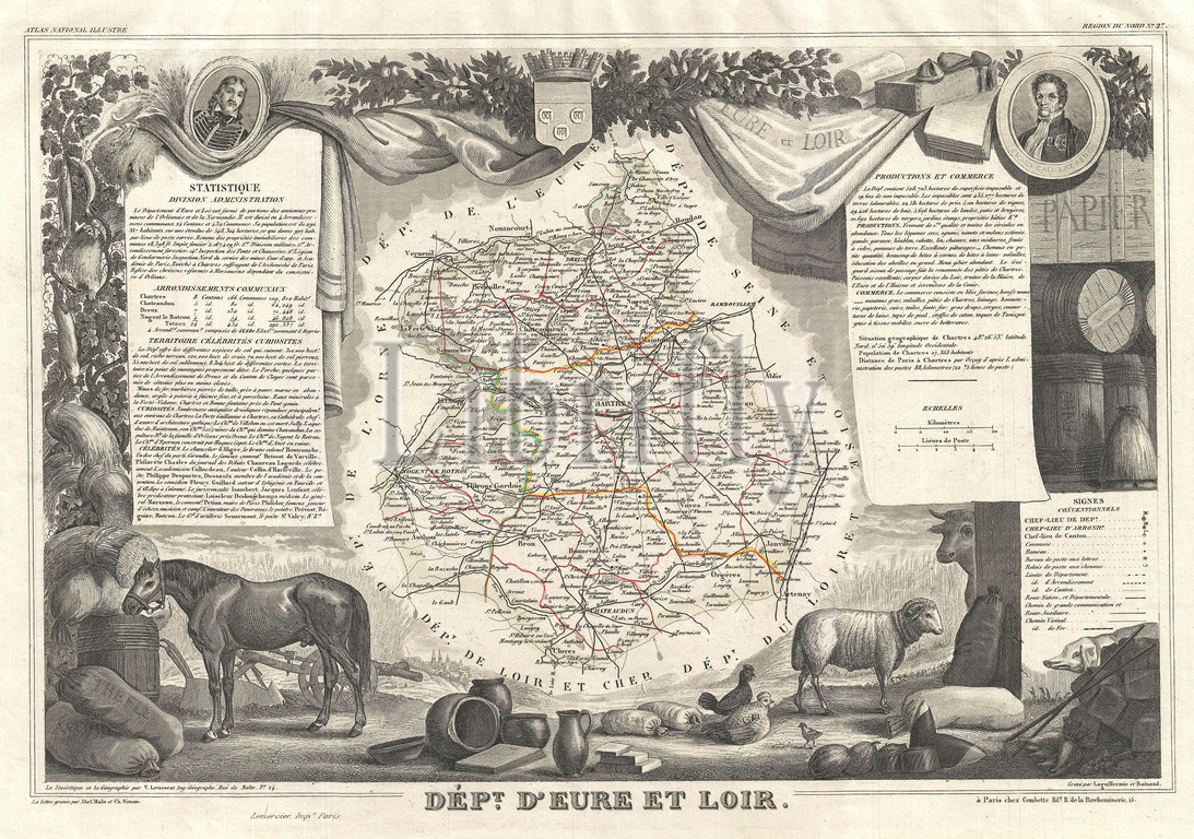 1852, Levasseur Map of the Department D'Eure Et Loir, France, Loire Wine Region, topography, cartography, geography, land, illustration, geographic, travel, topo, chart, grid, latitude, longitude, geometric, atlas, map, vintage, ancient, history, world, paper, old, retro, earth, atlas, art, historical, decorative, navigation, aged, historic, journey, discovery, exploration, geographical, Mappa mundi, space, region, old map, antique map, rare old maps, old antique plan, ols antique map, old antique view