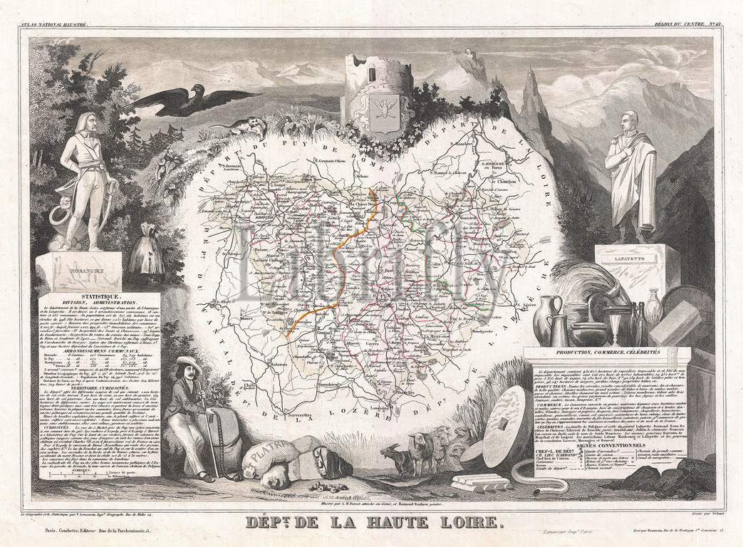 1852, Levasseur Map of the Department De La Haute Loire, France, Loire Valley Region, topography, cartography, geography, land, illustration, geographic, travel, topo, chart, grid, latitude, longitude, geometric, atlas, map, vintage, ancient, history, world, paper, old, retro, earth, atlas, art, historical, decorative, navigation, aged, historic, journey, discovery, exploration, geographical, Mappa mundi, space, region, old map, antique map, rare old maps, old antique plan, ols antique map, old antique view