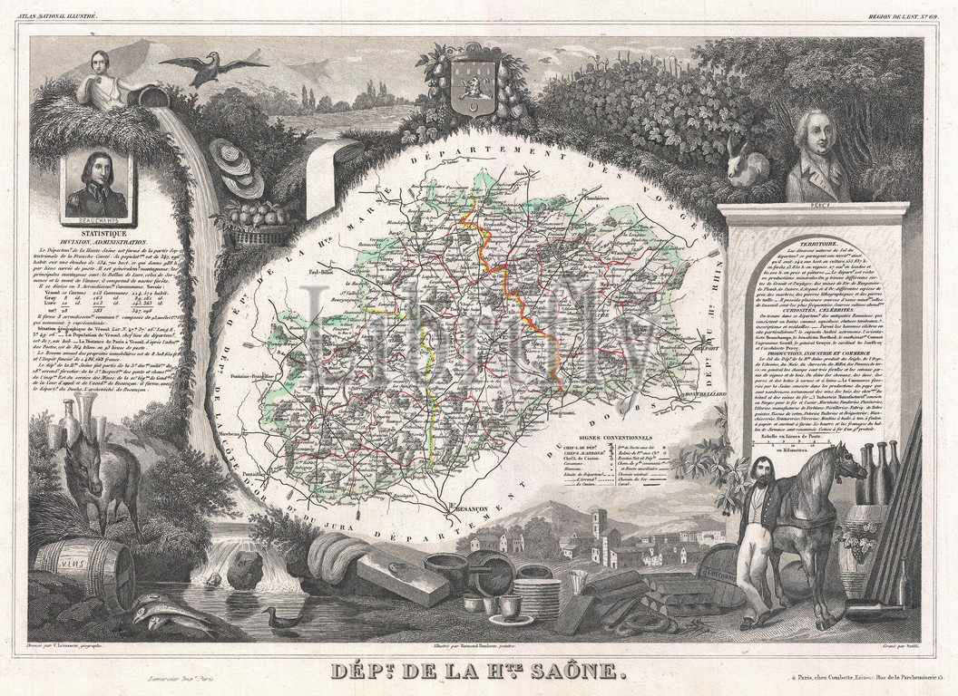 1852, Levasseur Map of the Department De La Haute Saone, France, Burgundy or Bourgogne Wine Region, topography, cartography, geography, land, illustration, geographic, travel, topo, chart, grid, latitude, longitude, geometric, atlas, map, vintage, ancient, history, world, paper, old, retro, earth, atlas, art, historical, decorative, navigation, aged, historic, journey, discovery, exploration, geographical, Mappa mundi, space, region, old map, antique map, rare old maps, old antique plan, ols antique map, old antique view