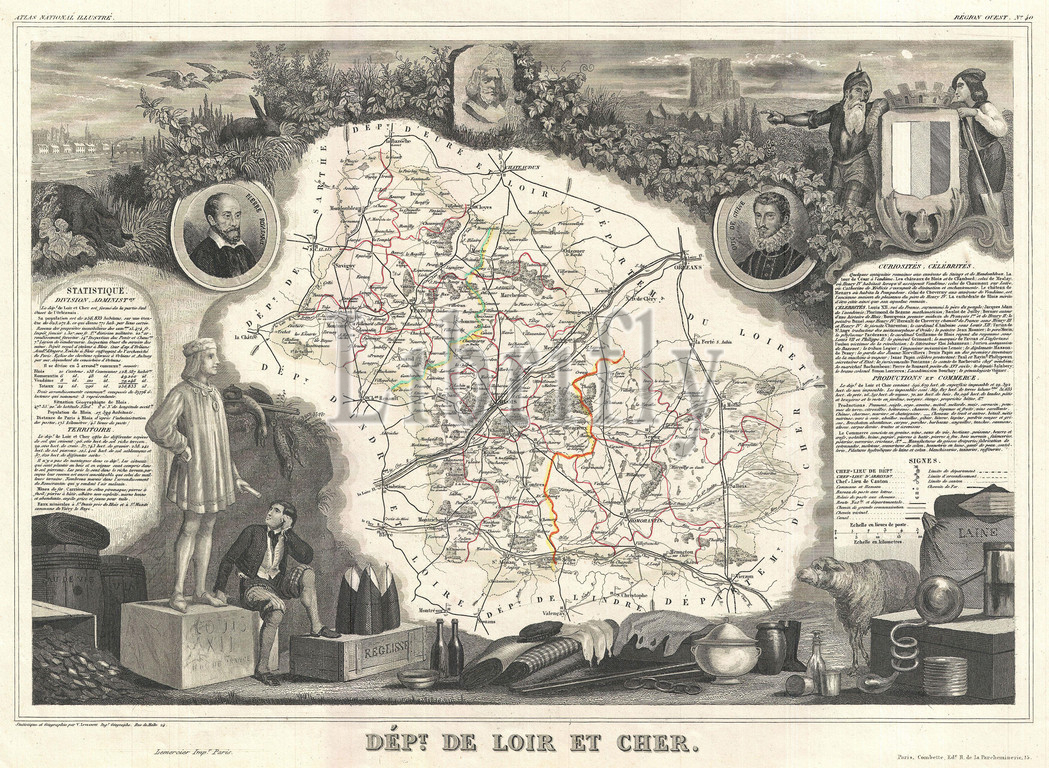 1852, Levasseur Map of the Department de Loir-et-Cher, France, Loire Valley Wine Region, topography, cartography, geography, land, illustration, geographic, travel, topo, chart, grid, latitude, longitude, geometric, atlas, map, vintage, ancient, history, world, paper, old, retro, earth, atlas, art, historical, decorative, navigation, aged, historic, journey, discovery, exploration, geographical, Mappa mundi, space, region, old map, antique map, rare old maps, old antique plan, ols antique map, old antique view