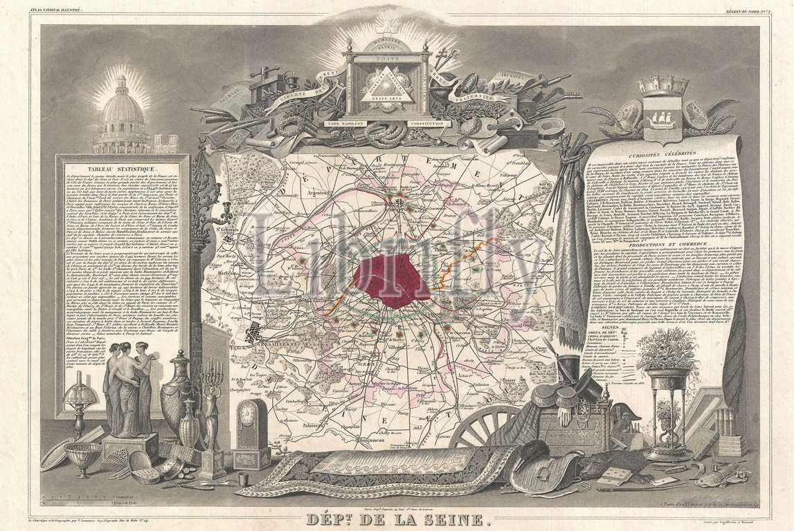 1852, Levasseur Map of the Department de la Seine, Paris