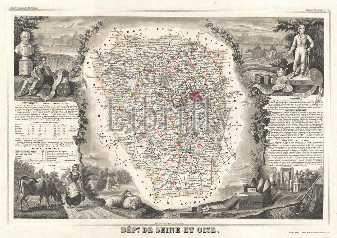 1852, Levasseur Map of Seine-et-Oise, Paris