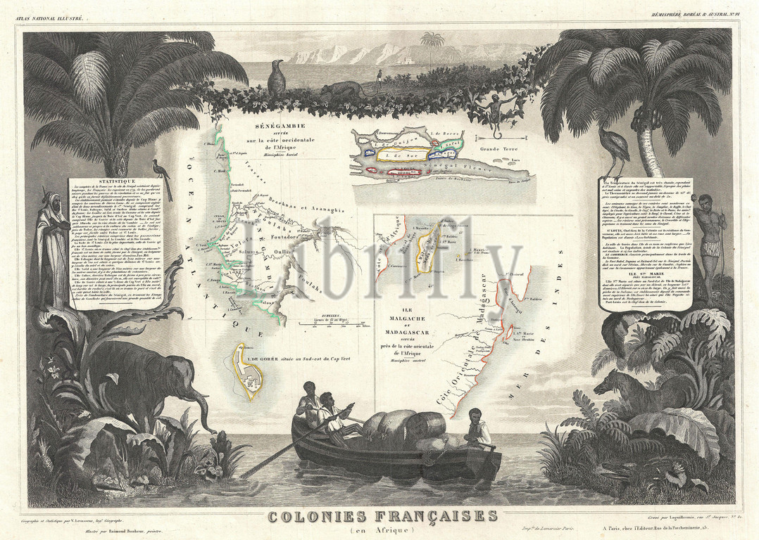 1852, Levassuer Map of Senegal, Senegambia, and Madagascar