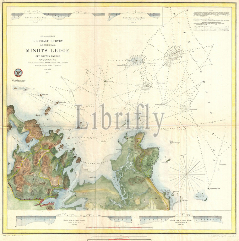 1853, U.S.C.S. Map of Minots Ledge, near Boston Harbor, Cohasset , topography, cartography, geography, land, illustration, geographic, travel, topo, chart, grid, latitude, longitude, geometric, atlas, map, vintage, ancient, history, world, paper, old, retro, earth, atlas, art, historical, decorative, navigation, aged, historic, journey, discovery, exploration, geographical, Mappa mundi, space, region, old map, antique map, rare old maps, old antique plan, ols antique map, old antique view