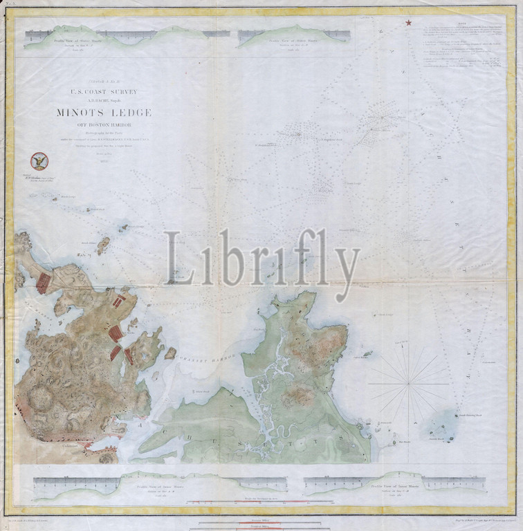 1853, U.S.C.S. Map of Minots Ledge, near Boston Harbor, Cohasset