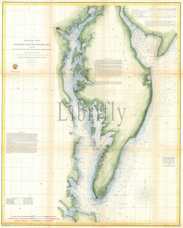 1855, U.S. Coast Survey Chart or Map of Chesapeake Bay and Delaware Bay
