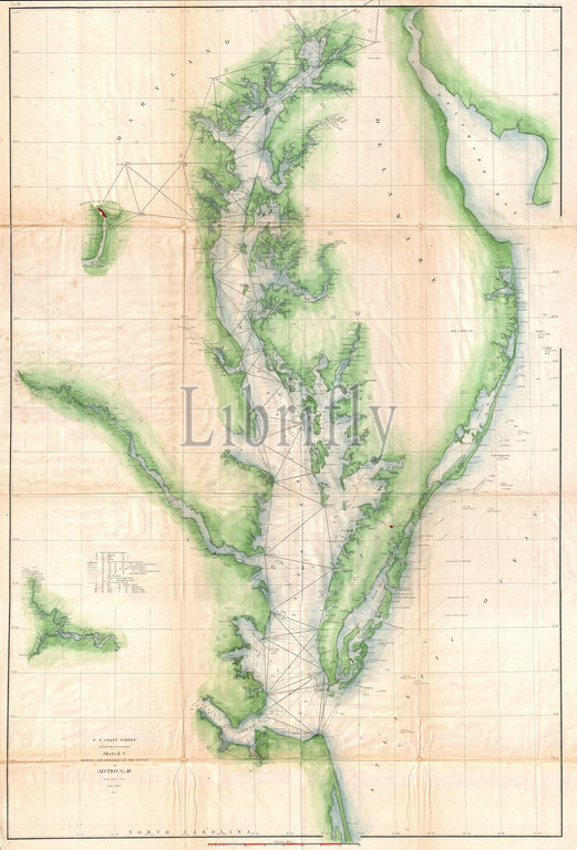 1855, U.S. Coast Survey Chart or Map of Chesapeake Bay and Delaware Bay