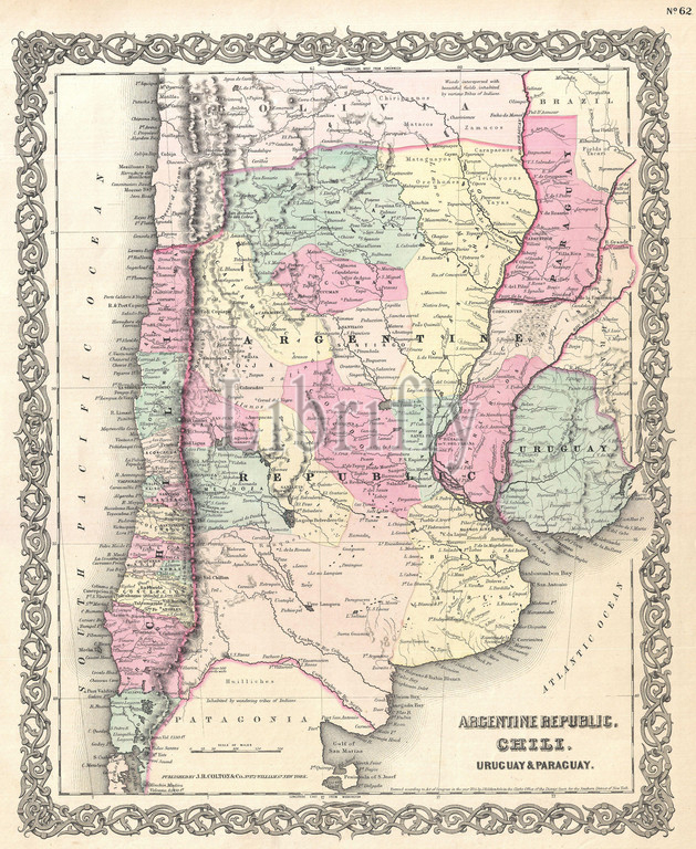 1855, Colton Map of Argentina, Chile, Paraguay and Uruguay