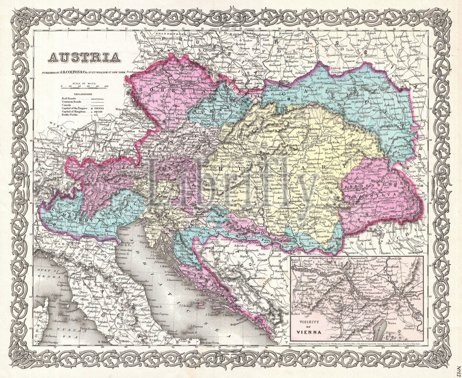 1855, Colton Map of Austria, Hungary and the Czech Republic