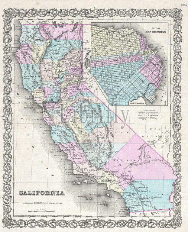 1855, Colton Map of California and San Francisco