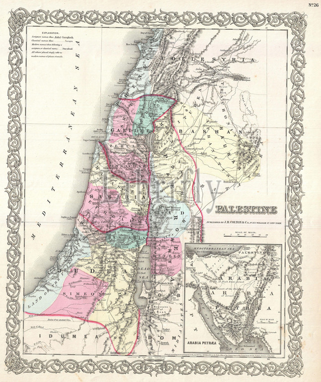 1855, Colton Map of Israel, Palestine or the Holy Land